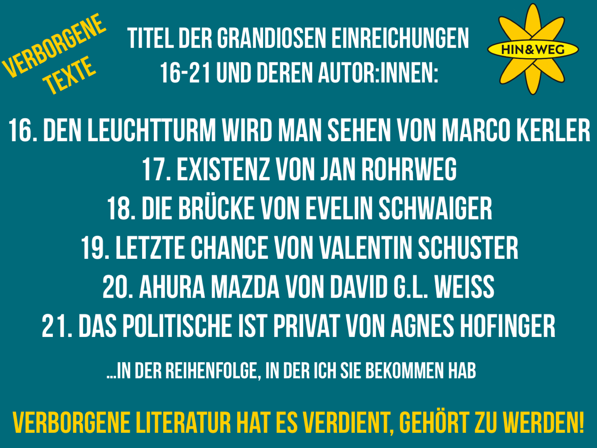 Der letzte Text war nicht bei den eingesandten Texten und in der Auslosung dabei. Klaus Janich hat mir den Text am Festival, nach den Lesungen, zukommen lassen und mich gebeten ihn aufzunehmen.